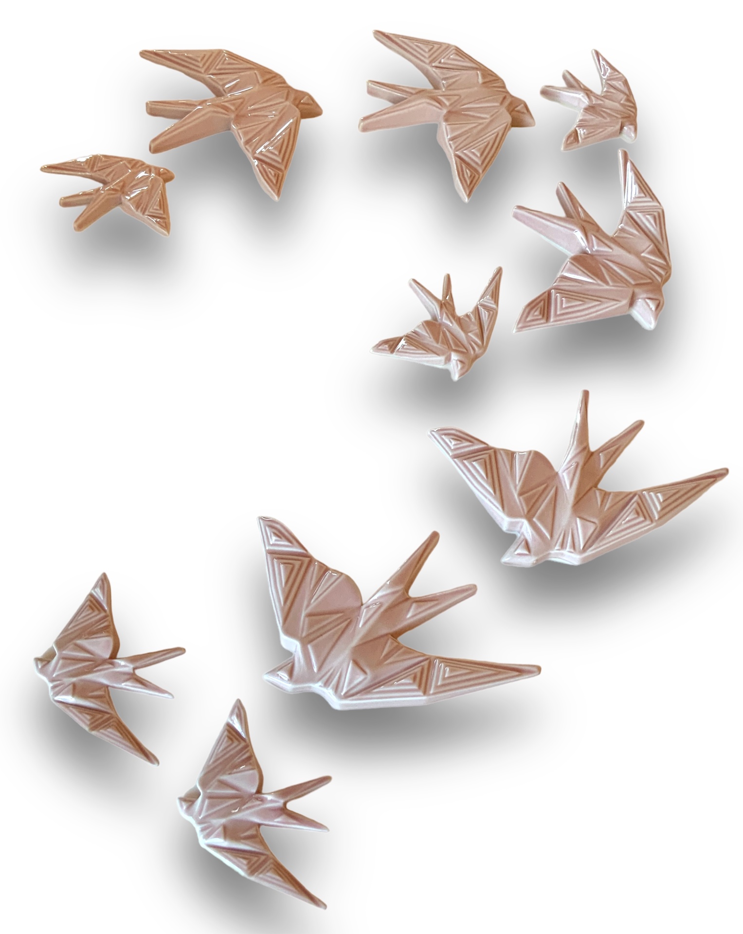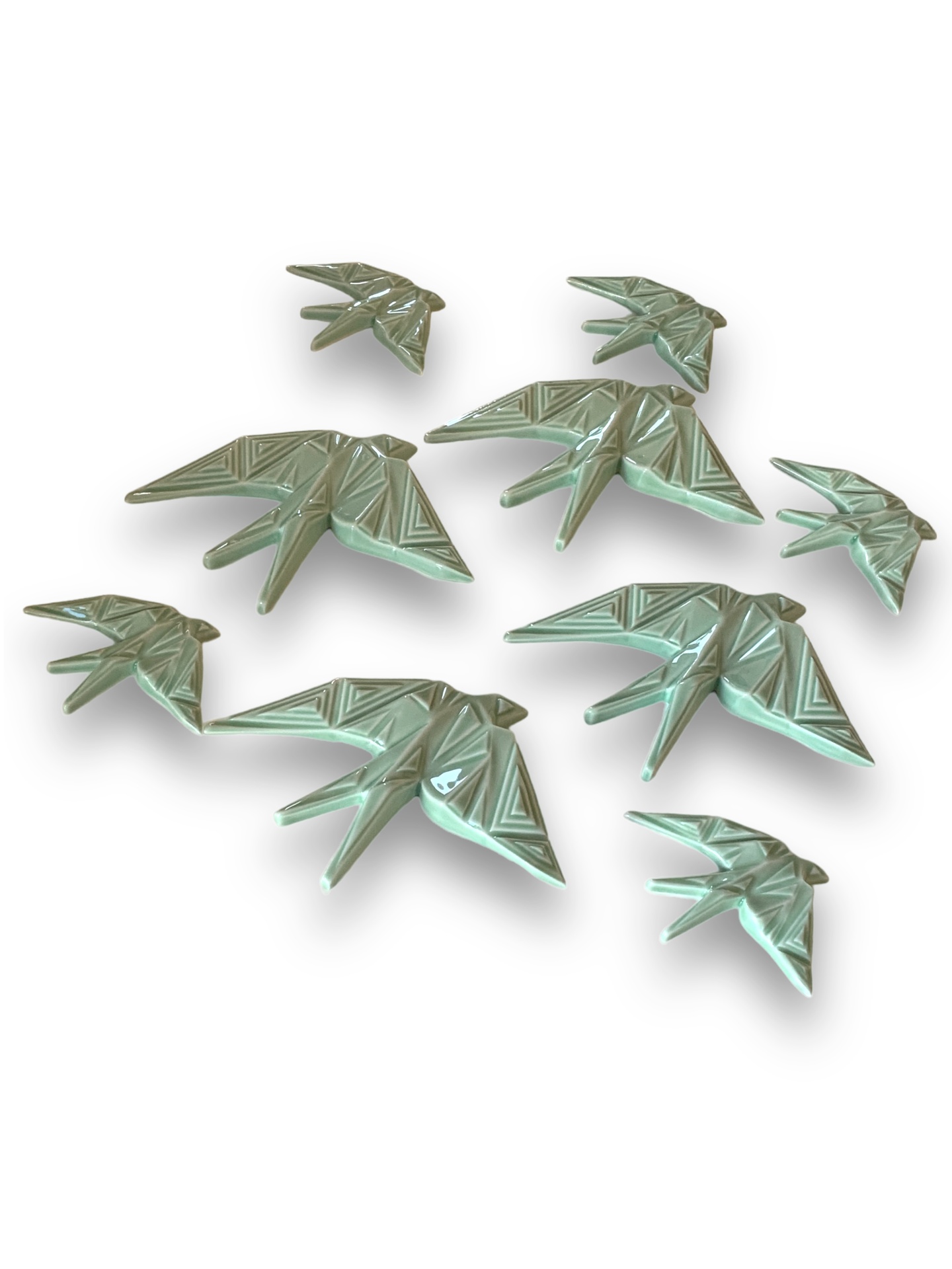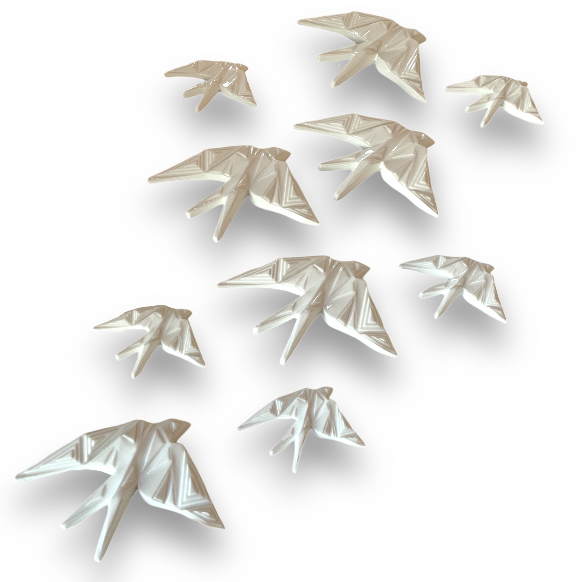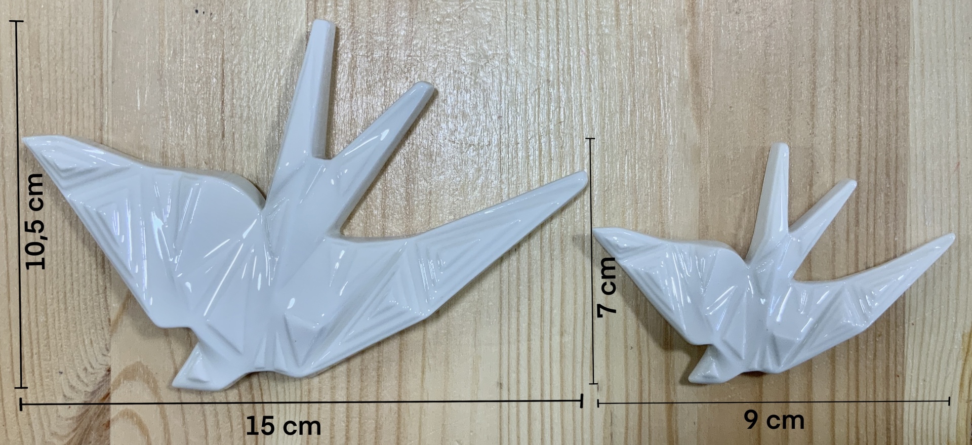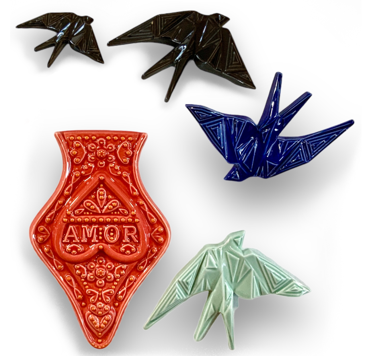 Andorinhas Modernística 10,00 € Desconto de %. IVA incluído. Partilhar Tamanho Pequena Média Grande Cor Preto Branco Azul Cobalto Vermelho Verde Água Rosa Comprar Contactar Mais um desenho exclusivo da Modernística. As andorinhas têm um design origami, são produzidas na melhor porcelana fina e posteriormente vidradas as várias cores. Possuem um orifício na parte posterior para efectuar o encaixe na parede.Dimensões: Pequena - 9 x 7 cm Média - 15 x 10.5 cm Grande - 19 x 15 cm Marca Modernística® Tags andorinhaporcelanaswallowandorinhasswallowscerâmicaceramic swallowgolondrina