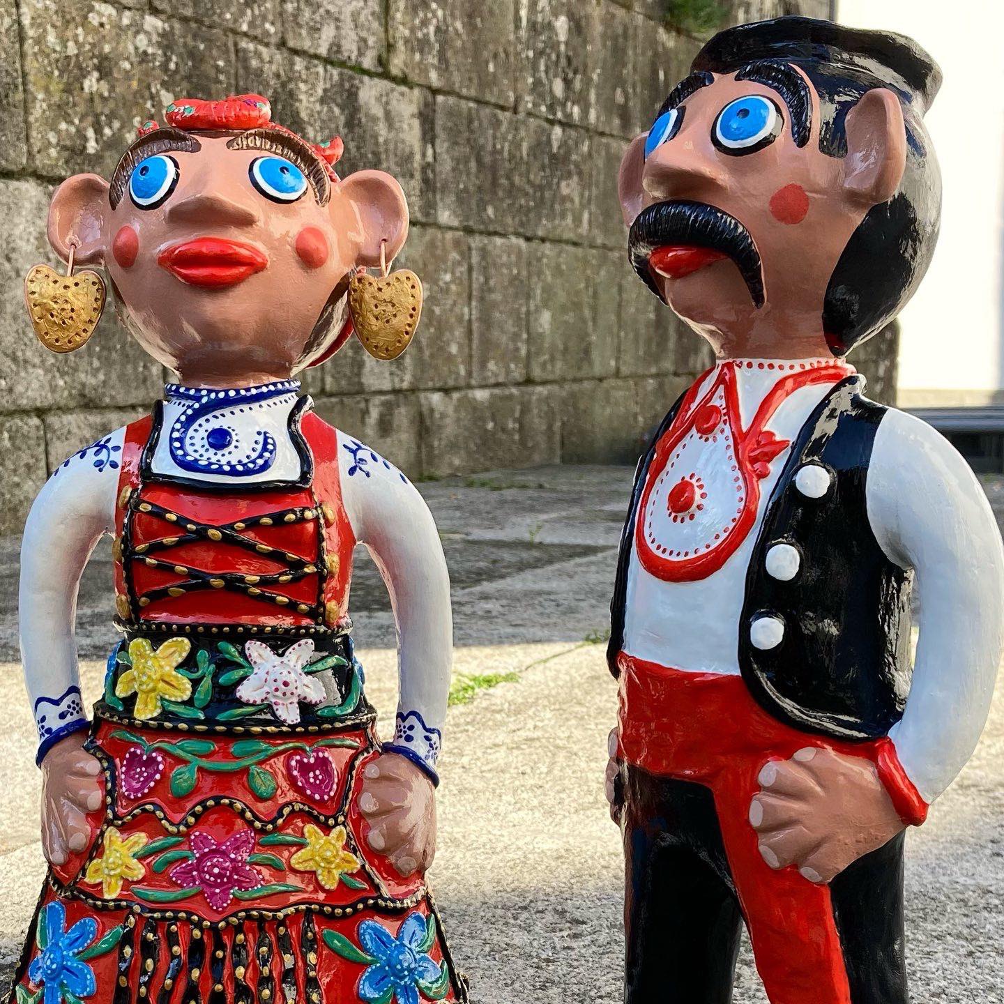 Cabeçudos de Viana 325,00 € Desconto de %. IVA incluído. Partilhar O produto encontra-se sem stock. Par de Cabeçudos de Viana feitos à mão e pintados à mão. Alto Relevo, peça única Altura: +-43 cm Material: Materiais reciclados e pasta cerâmica. Marca Modernística® Tags cabeçudosgigantone