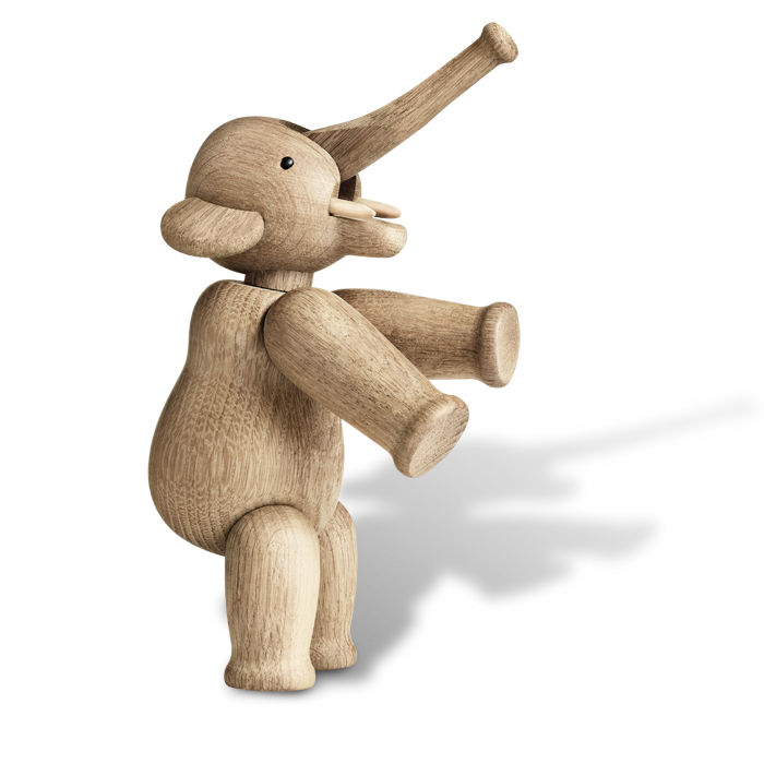 O elefante foi desenhado e produzido por Kay Bojesen em 1953. A família imaginária de brinquedos de madeira de Kay Bojesen provoca um carinho muito especial nas crianças e também nos adultos. Mais um ícone do design.