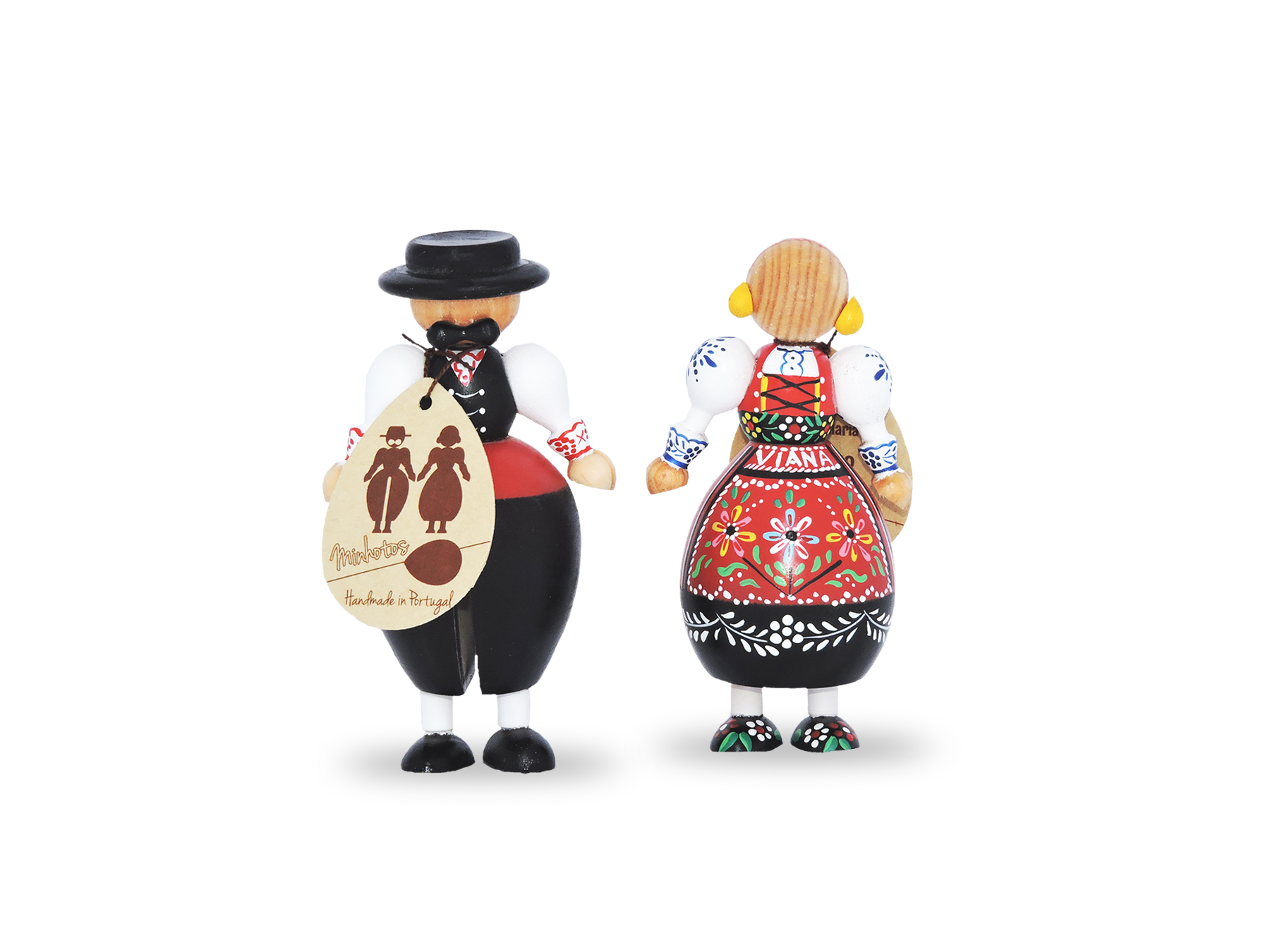 Minhotos em madeira - Par 40,00 € Desconto de %. IVA incluído. Partilhar O produto encontra-se sem stock. Par de Minhotos, Maria e Manel, de 10 cm, 20 ou 30 cm de altura. Feitos à mão em madeira maciça e pintados à mão. O desenho dos aventais para envio são aleatórios, pois são todos diferentes. Marca Minhotos®