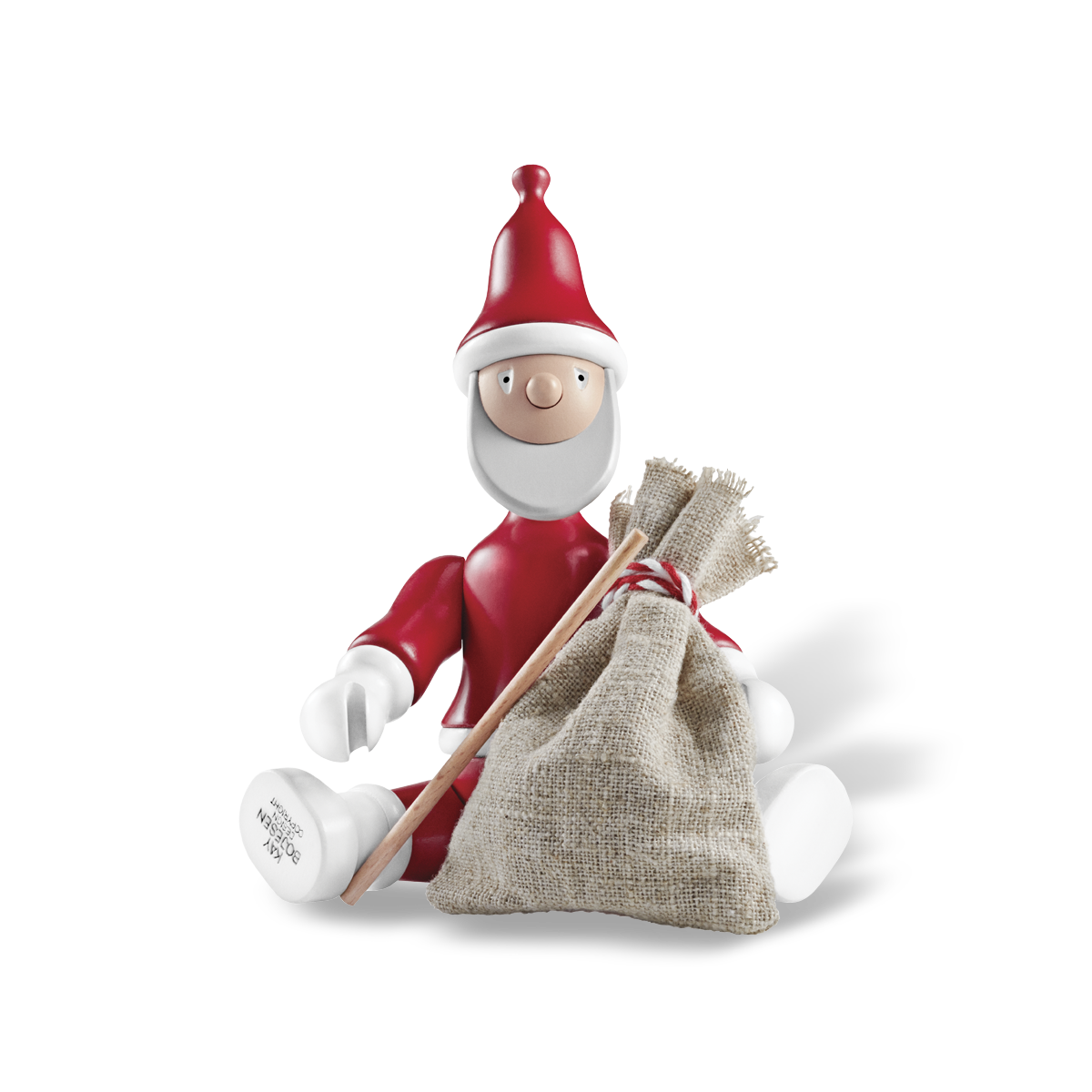 Aqui está o Pai Natal original de Kay Bojesen da década de 1940, com seu saco e bengala. Tornar-se-á no favorito da sua família e trará alegria ano após ano quando redescoberto na sua caixa de decorações de Natal.