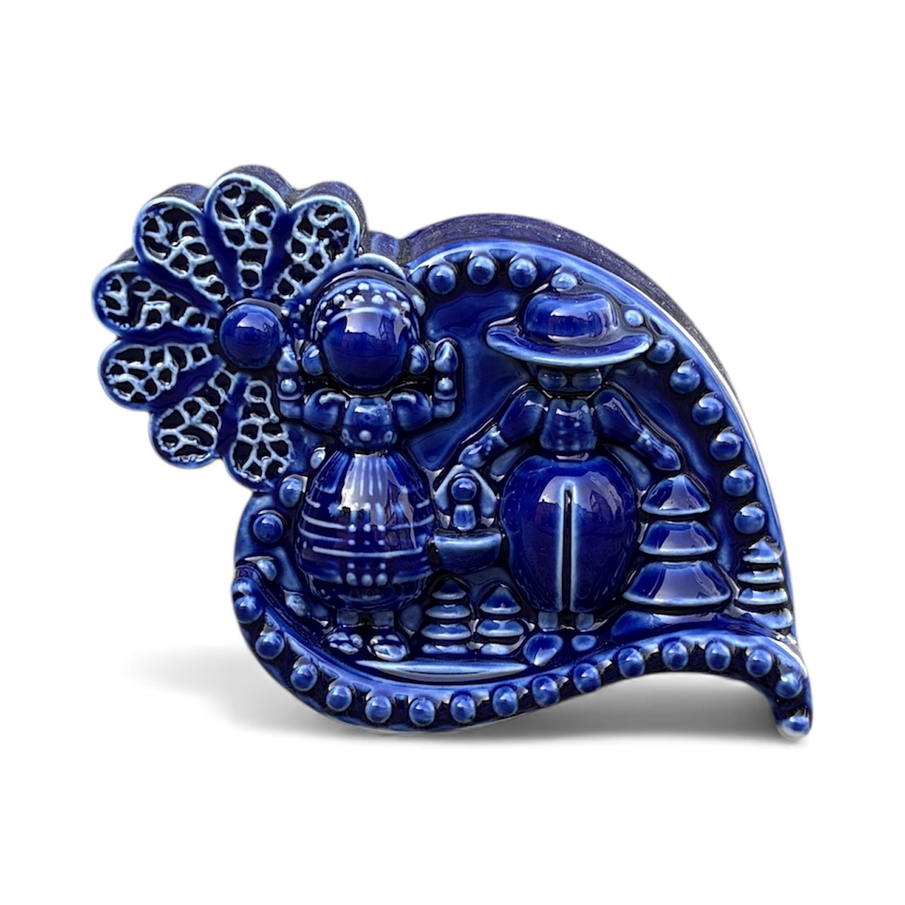 • Escultura decorativa azul em cerâmica com duas figuras humanas tradicionais