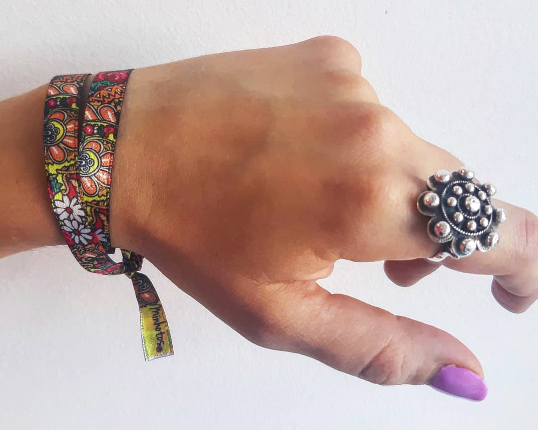 Pulseira Minhotos 2,50 € Desconto de %. IVA incluído. Partilhar Cor Amarelo Branco Vermelho Preto Desenho bordado vermelha Desenho bordado preto Comprar Contactar A verdadeira Pulseira minhota, com o padrão do lenço antigo do traje de Viana do Castelo. Com 45 cm de comprimento tem a possibilidade de dar duas voltas ao pulso. Disponíveis em amarelo, vermelho, branco e preto. Marca Modernística® Características