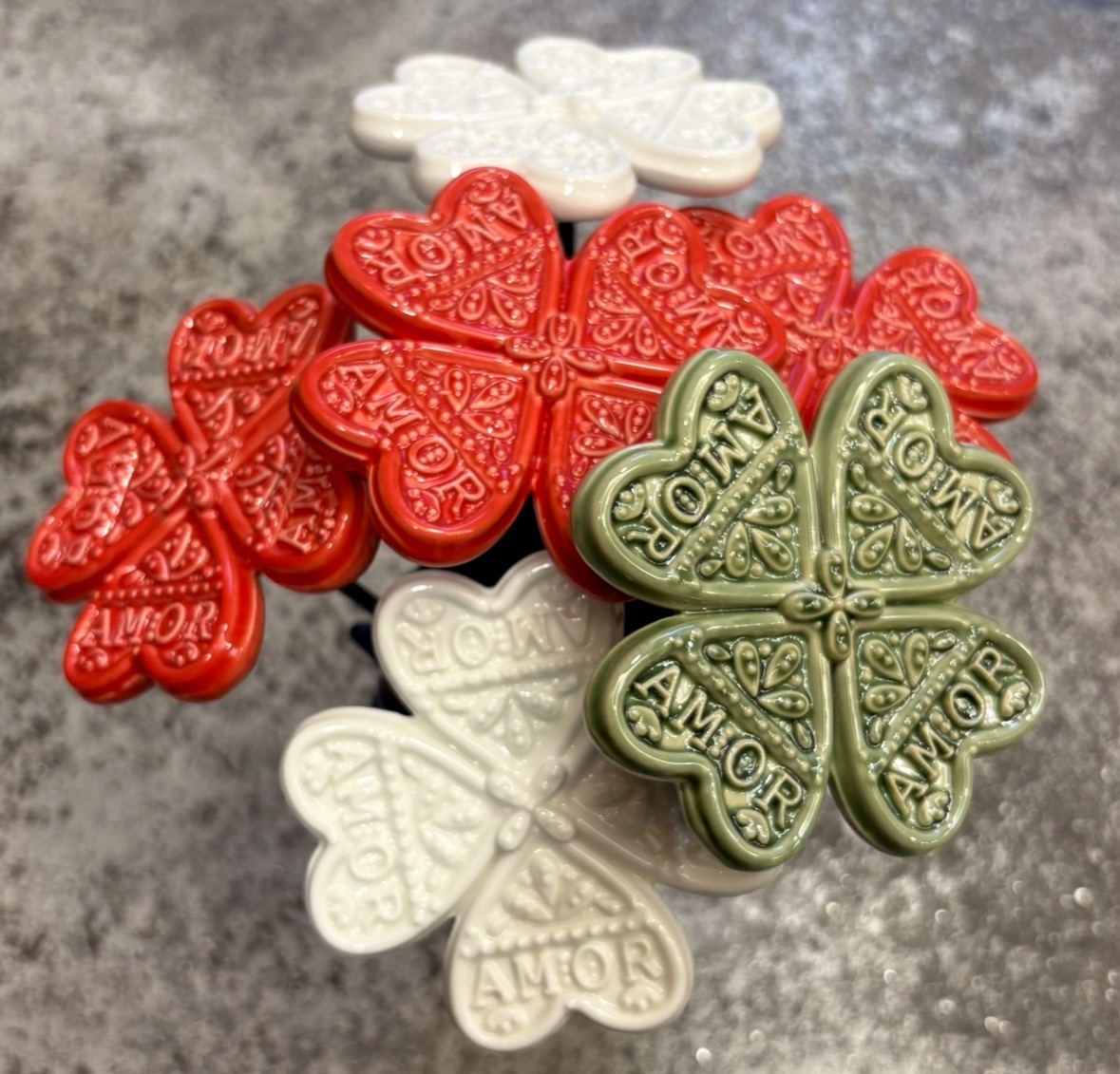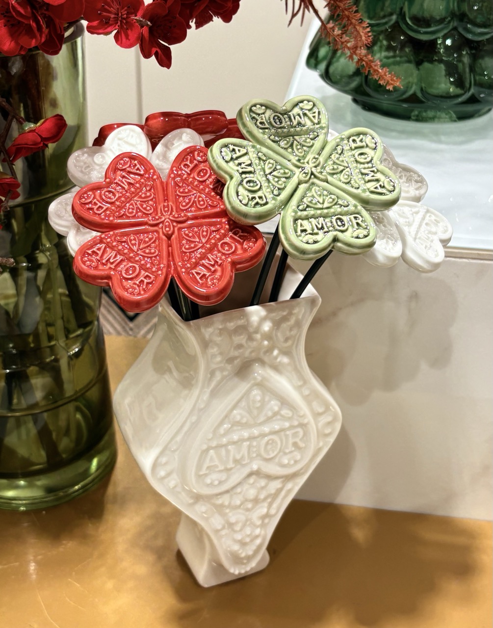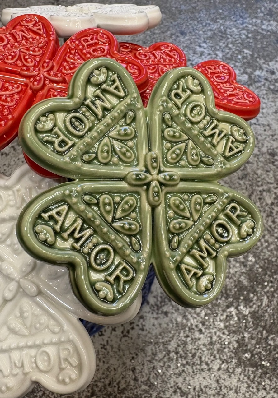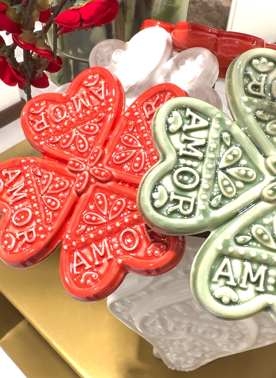 Trevo do Amor 19,00 € Desconto de %. IVA incluído. Partilhar Trevo do Amor Verde Vermelho Branco Comprar Contactar 19 unidades em stock Trevo do Amor Uma nova peça da colecção Algibeira. Um trevo em porcelana vidrada, em alto relevo. Um trevo de 4 folhas que traz sorte e também amor! Design exclusivo da Modernística®️ Marca Modernística® Tags cerâmicaAlgibeiraTrevoFlorAmorSorteTrevo do amor