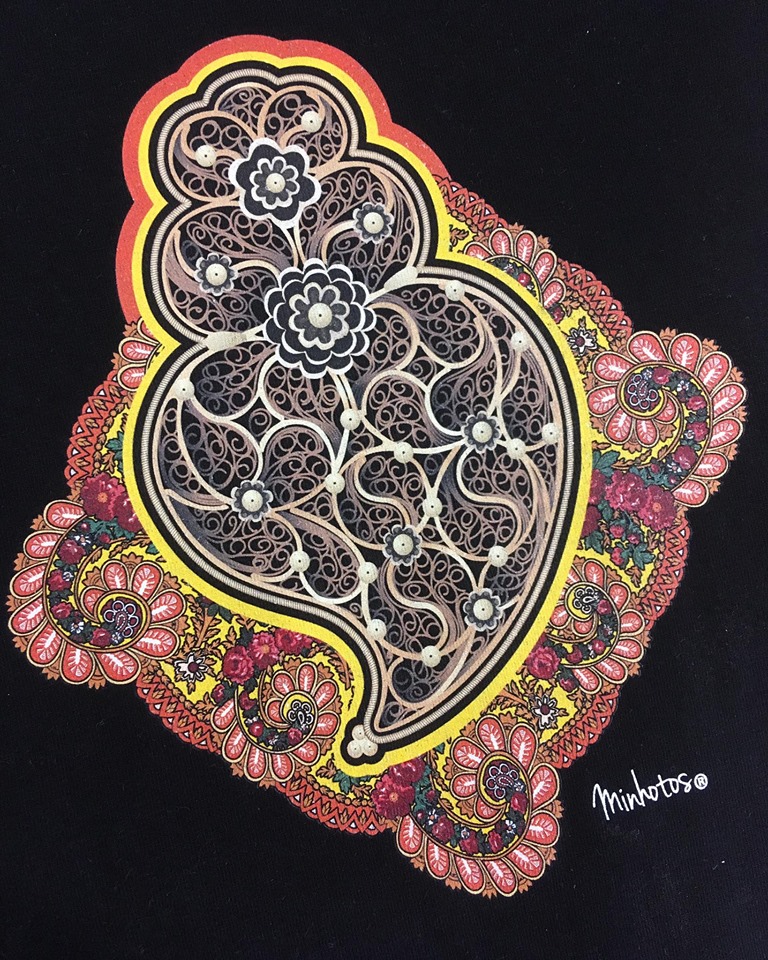 Tshirt Coração de Filigrana com Lenço 16,90 € Desconto de %. IVA incluído. Partilhar Tamanho S M L XL XXL Cor Branco Comprar Contactar 10 unidades em stock Uma bonita tshirt em 100%algodão, desenhada com o Coração de Filigrana e o padrão do lenço antigo de Viana do Castelo. Impressão directa de alta qualidade 100%algodão.